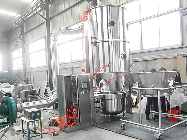 沸腾制粒机又称一步造粒机,它是利用粘合剂的粘结作用,固体粉末间相互架桥、团聚,从而逐渐形成颗粒。