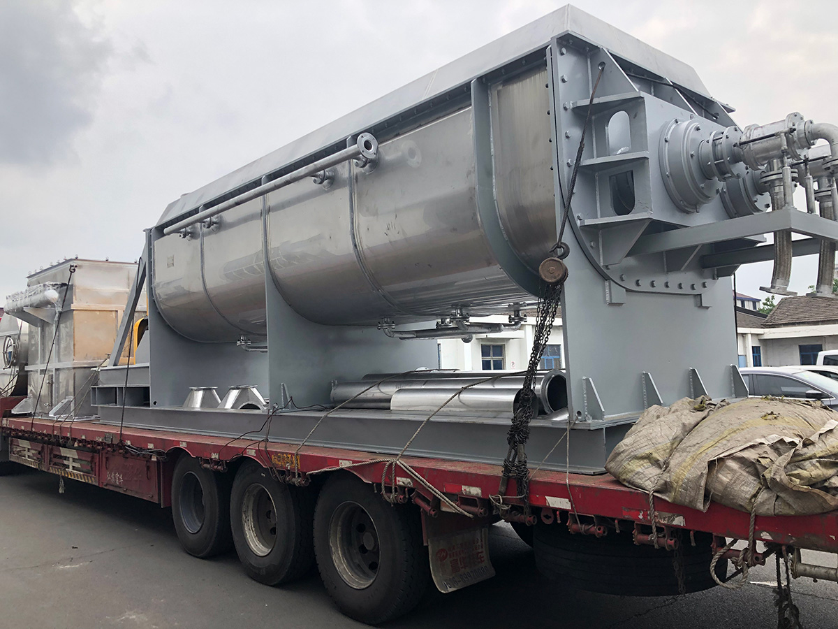 桨叶式干燥机是一种在设备内部设置搅拌桨,使湿物料在桨叶的搅动下,与热载体以及热表面充分接触,从而达到干燥目的的低速搅拌 干燥器,结构形式一般为卧式,双轴或四轴。桨叶式干燥机分为热风式和传导式。热风式即通过热载体(如热空气)与被干燥的物料相互接触并进行干燥,在传导式中热载体并不与被干燥的物料直接接触,而是热表面与物料相互接触。