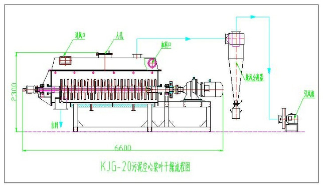 空心轴上密集排列着楔型中空桨叶,热介质经空心轴流经桨叶。单位有效容积内传热面积很大,热介质温度从-40℃到320℃,可以是水蒸汽,也可以是液体型:如热水、导热油等。间接传导加热,没有携带空气带走热量,热量均用来加热物料。热量损失仅为通过器体保温层向环境的散热。楔型桨叶传热面具有自清洁功能。物料颗粒与楔型面的相对运动产生洗刷作用,能够洗刷掉楔型面上附着物料,使运转中一直保持着清洁的传热面。 桨叶干燥机的壳体为Ω型,壳体内一般安排二到四根空心搅拌轴。壳体有密封端盖与上盖,防止物料粉尘外泄而充分发挥作用。