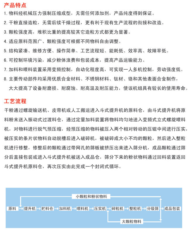 适应原料范围广、颗粒强度可根据不同物料自由调整。